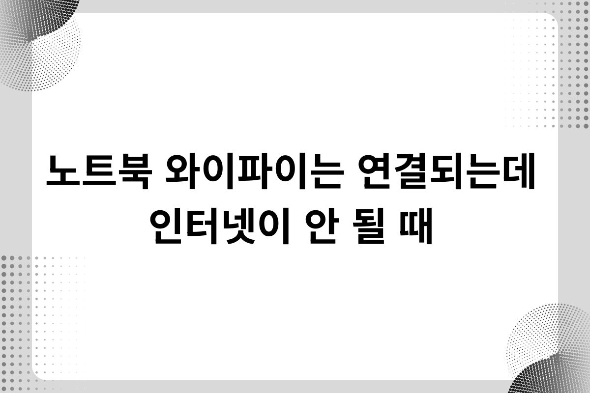 노트북이 와이파이에 연결되었음에도 인터넷에 접속하지 못하는 이유는 다양합니다. 크게 세 가지 범주로 나누어 볼 수 있습니다.